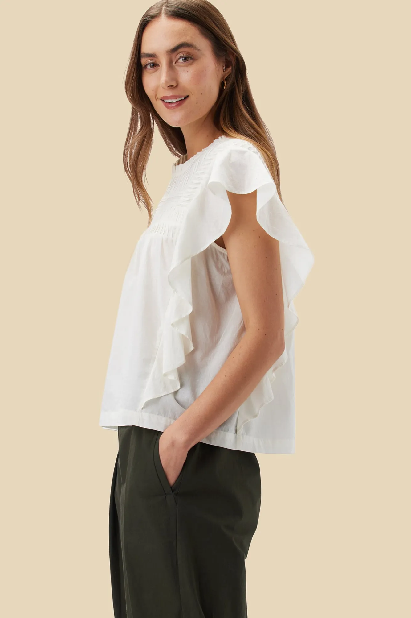 Timeless and feminine. The Aida Blouse, crafted in organic cotton with beautiful pin tucking and ruffle details, exudes a subtle romantic charm.