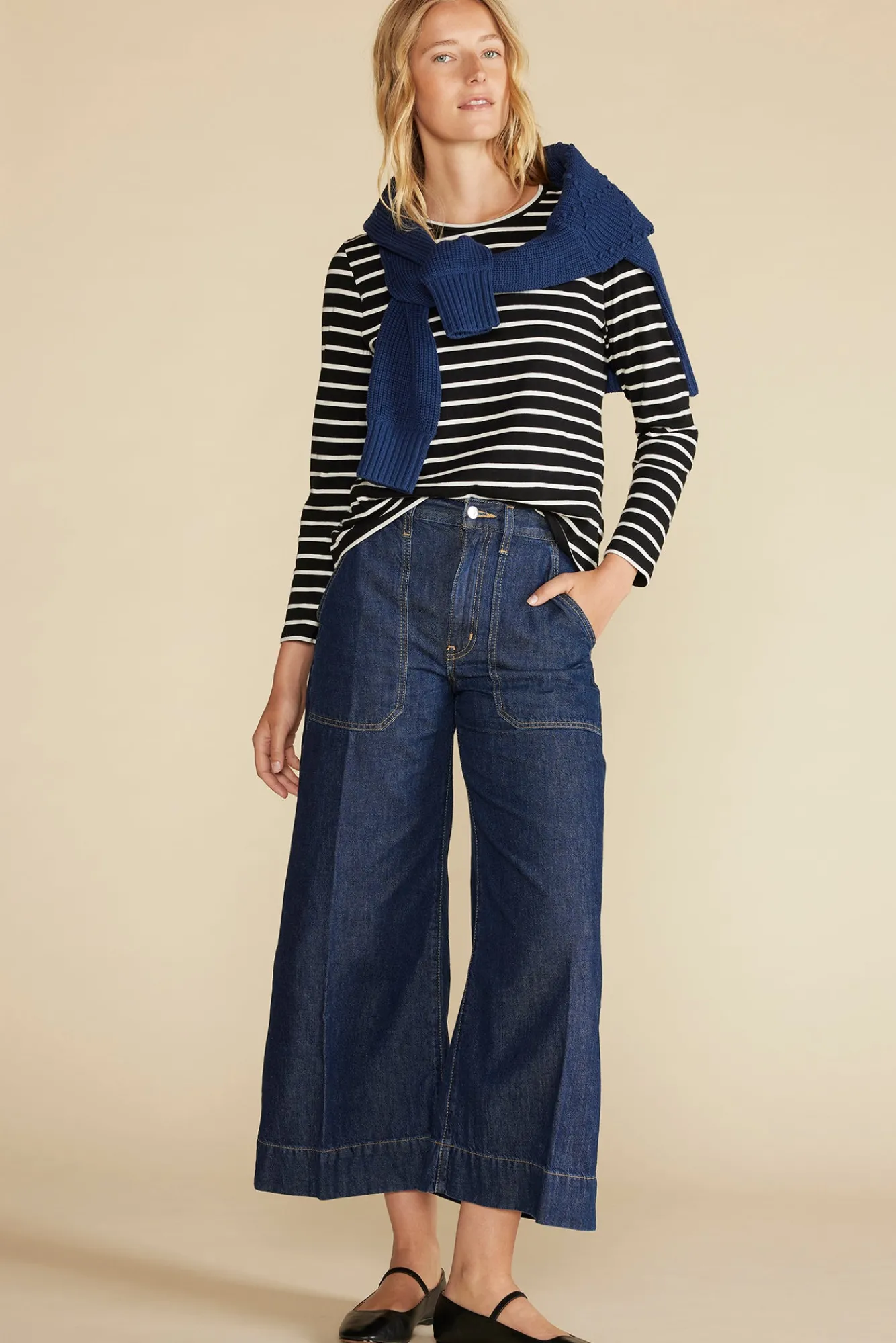 – Long-sleeve classic tee with ribbed trim at the crew neck.