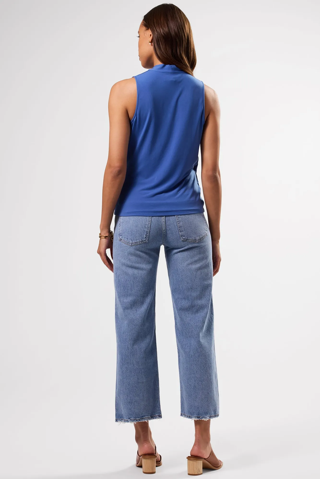 Crafted in ultra-soft stretch knit, this tank has a subtle draped v-neck, perfect for layering under a blazer for a professional take on Parisian chic.