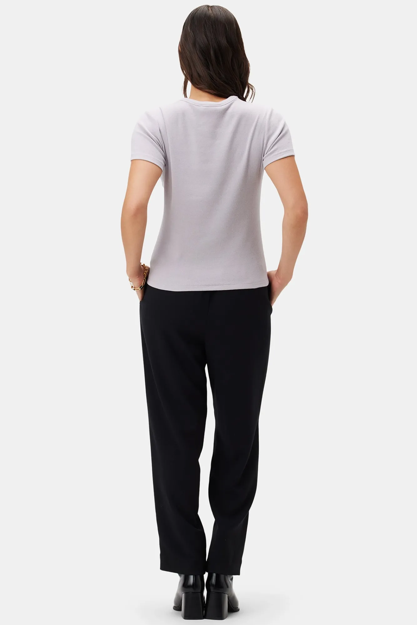 - Slim, flattering t-shirt featuring crewneck and cap sleeves.