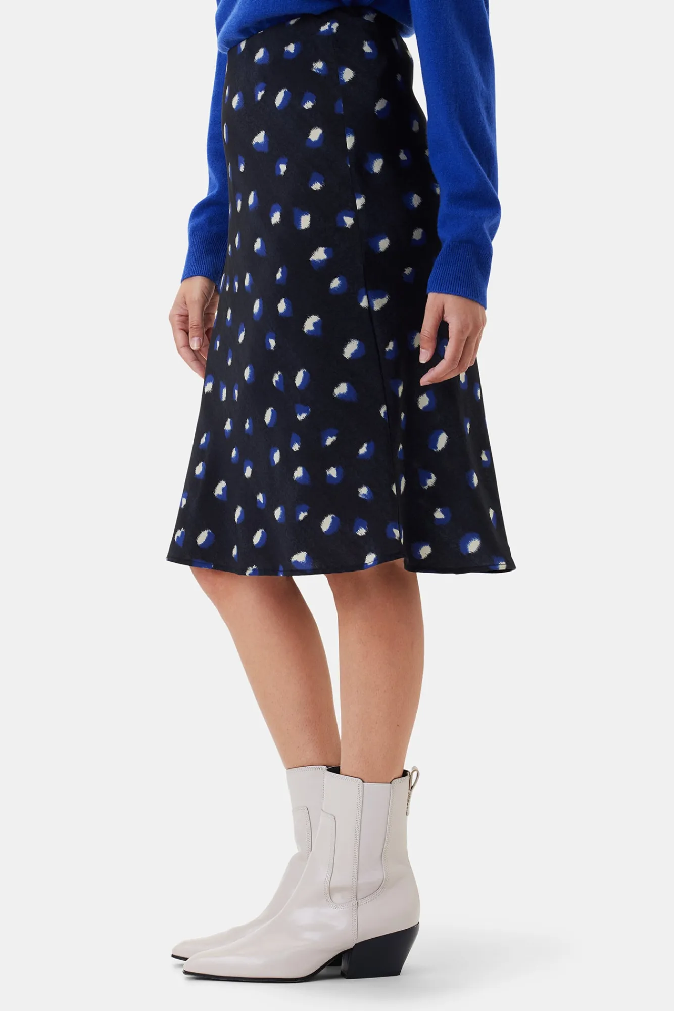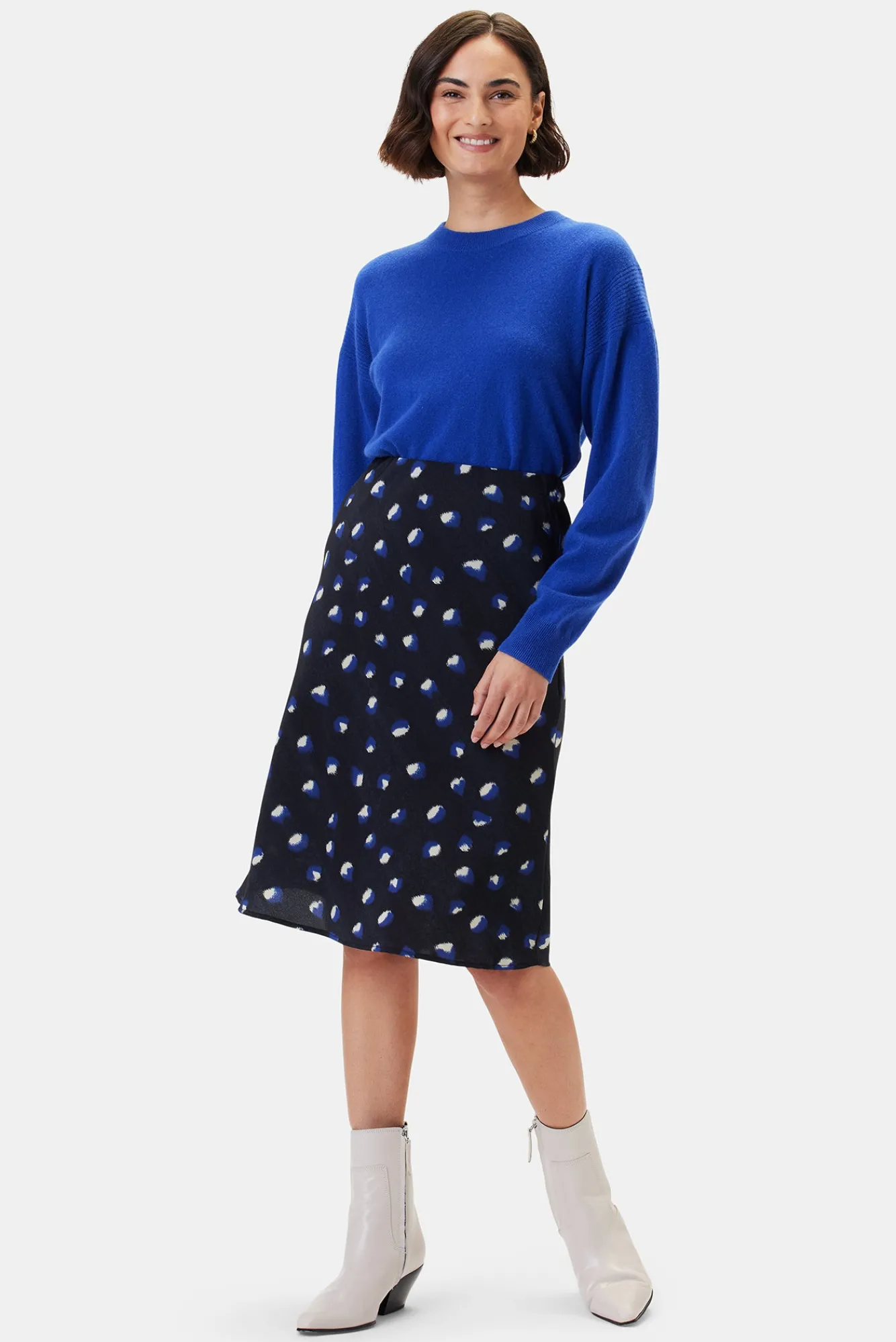 Machine WashableMidi length skirt with an elastic waistband.Made from 100% silk.Length: 28″Model is 5’10” and wears size…