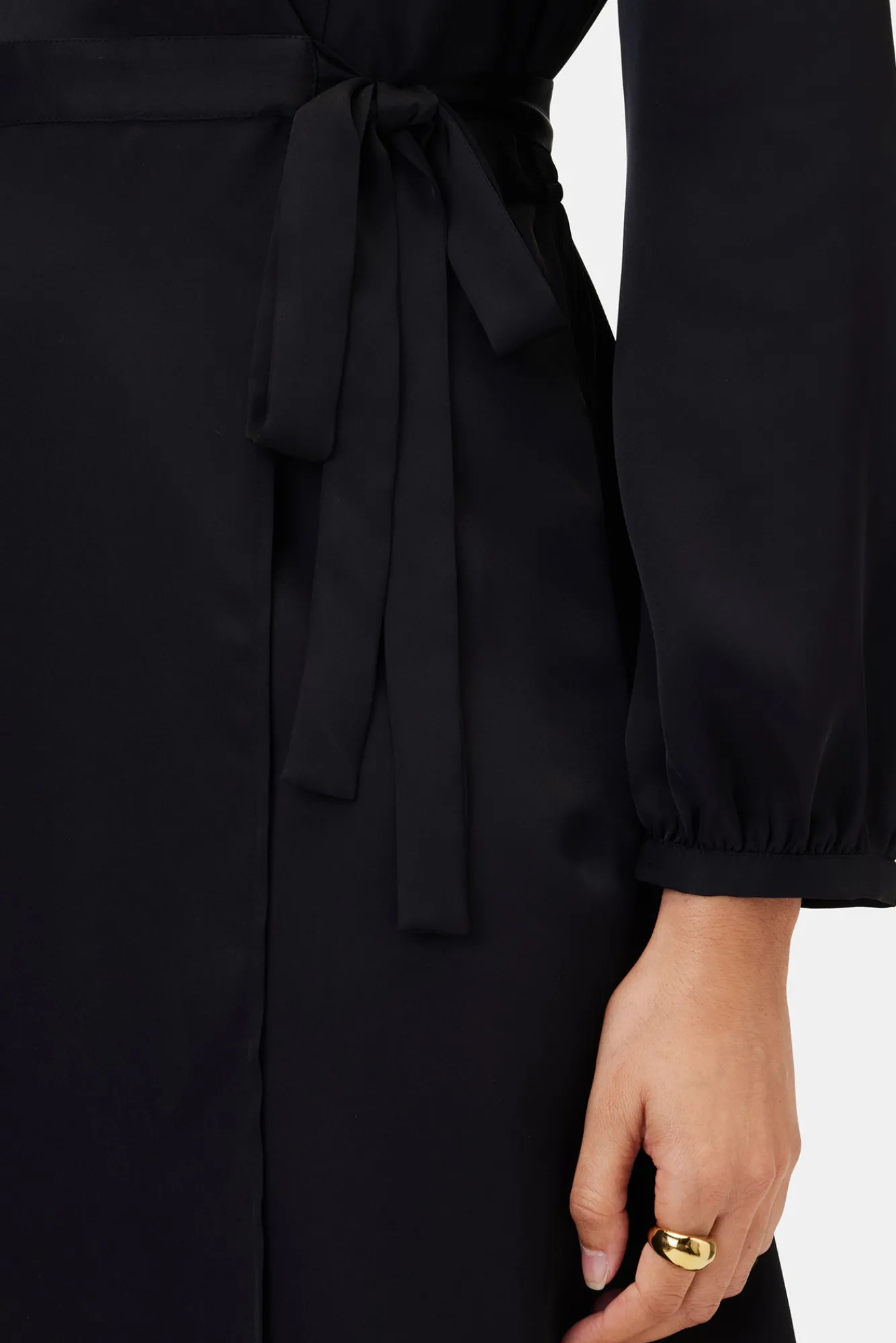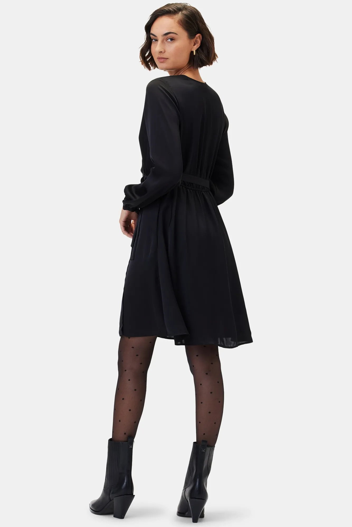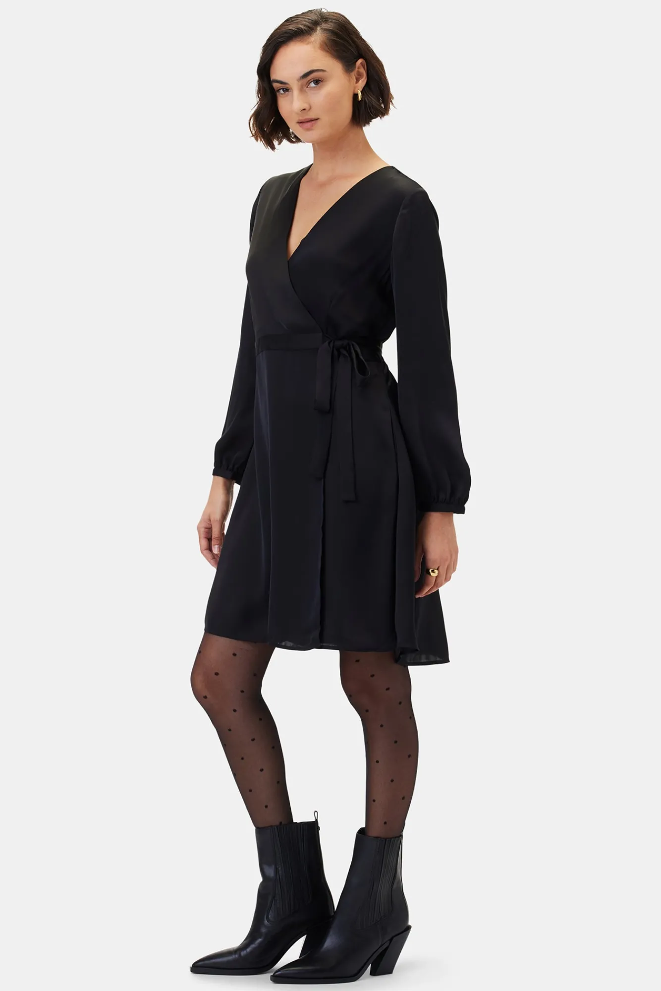 Dry Clean OnlyLong sleeve a-line wrap dress with a fixed waist, elastic back waist detail, and tie.Made from 100% Recycl…