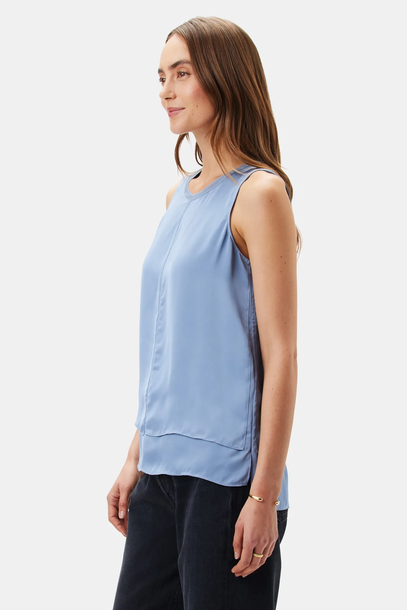 Featuring clean lines and soft silky fabric, this tank exudes casual elegance. The double-lined silhouette provides total coverage while giving light as air, layered vibes.