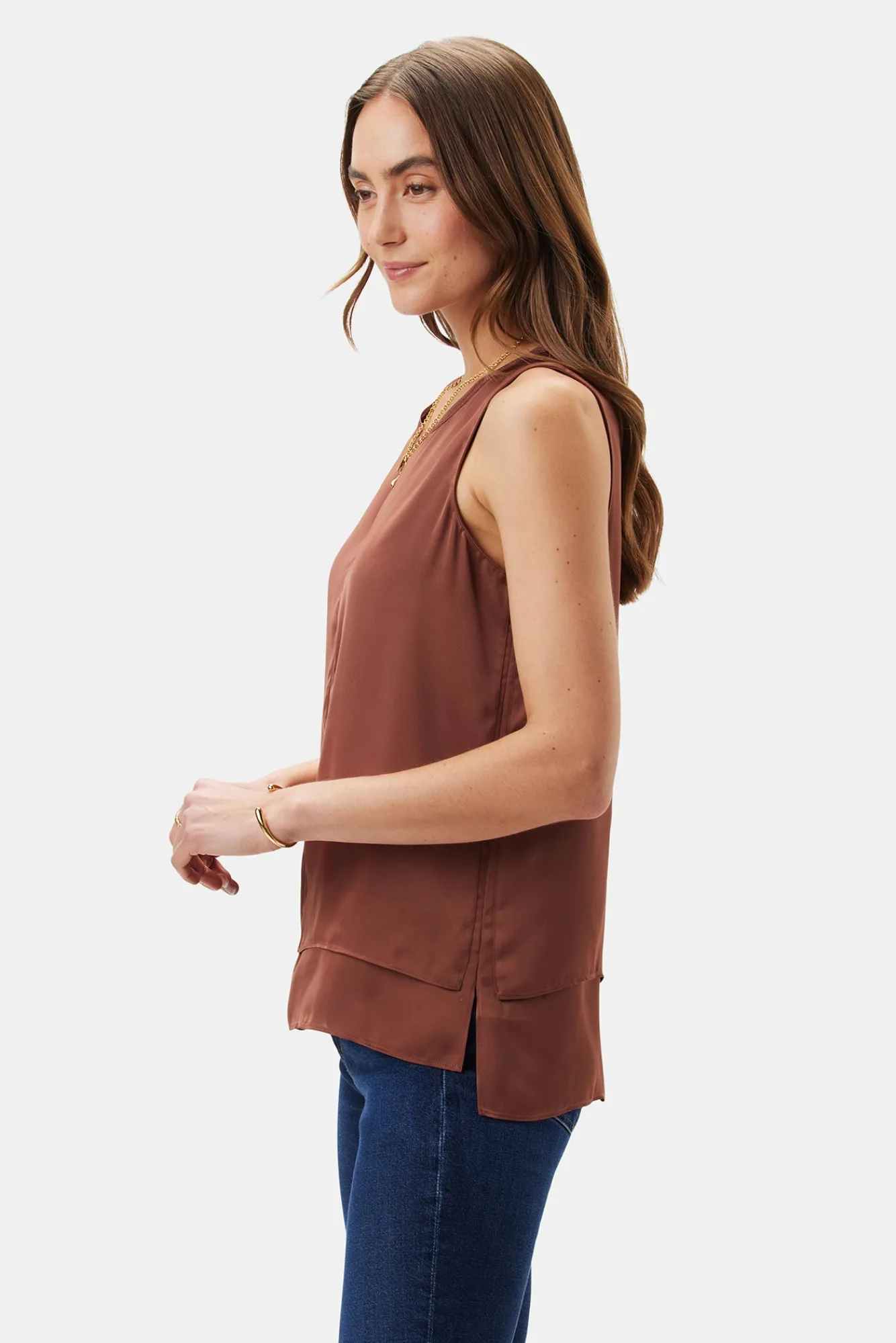 Featuring clean lines and soft silky fabric, this tank exudes casual elegance. The double-lined silhouette provides total coverage while giving an airy, layered look.